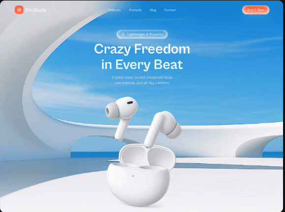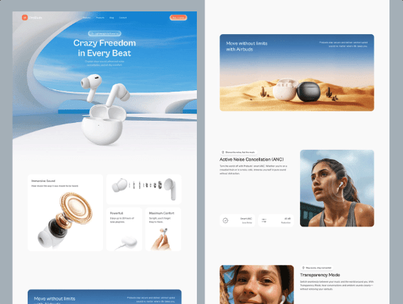 Beispiel-Webseite für eine Kopfhörer-Marke – erstellt, um zu zeigen, wie Produkt-Webseiten aussehen können. Wir erstellen Webseiten für Marken aller Art.