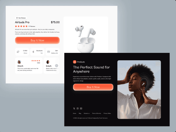 Wir haben Pro Duck als fiktive Kopfhörer-Marke entwickelt, damit potenzielle Kunden sehen können, wie professionelle Produkt-Webseiten aussehen. Wir erstellen Webseiten für Kopfhörer-Marken, Modemarken, Tech-Produkte und alle Arten von Brands – immer conversion-optimiert und visuell ansprechend.