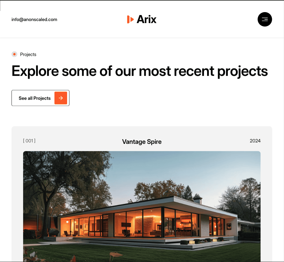 Baufirmen brauchen eine professionelle Präsenz. Arix hatte keine Webseite, die ihre Projekte überzeugend darstellt. Wir mussten eine Lösung entwickeln, die Bauprojekte visuell ansprechend präsentiert und bei Google-Suchen sichtbar ist.
